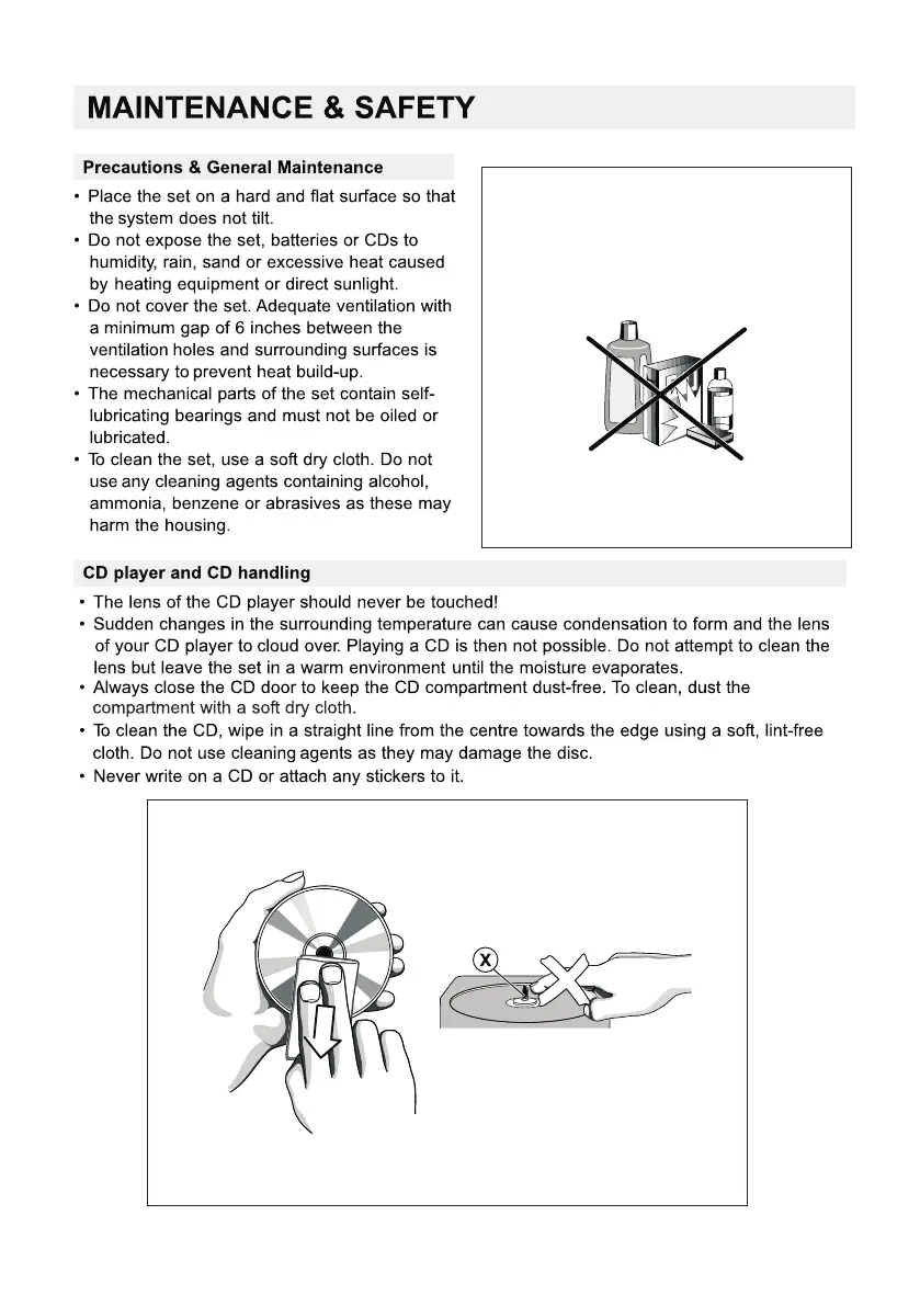 lauson CP441 - Maintenance and Safety; General Maintenance Precautions; CD Player and CD Handling