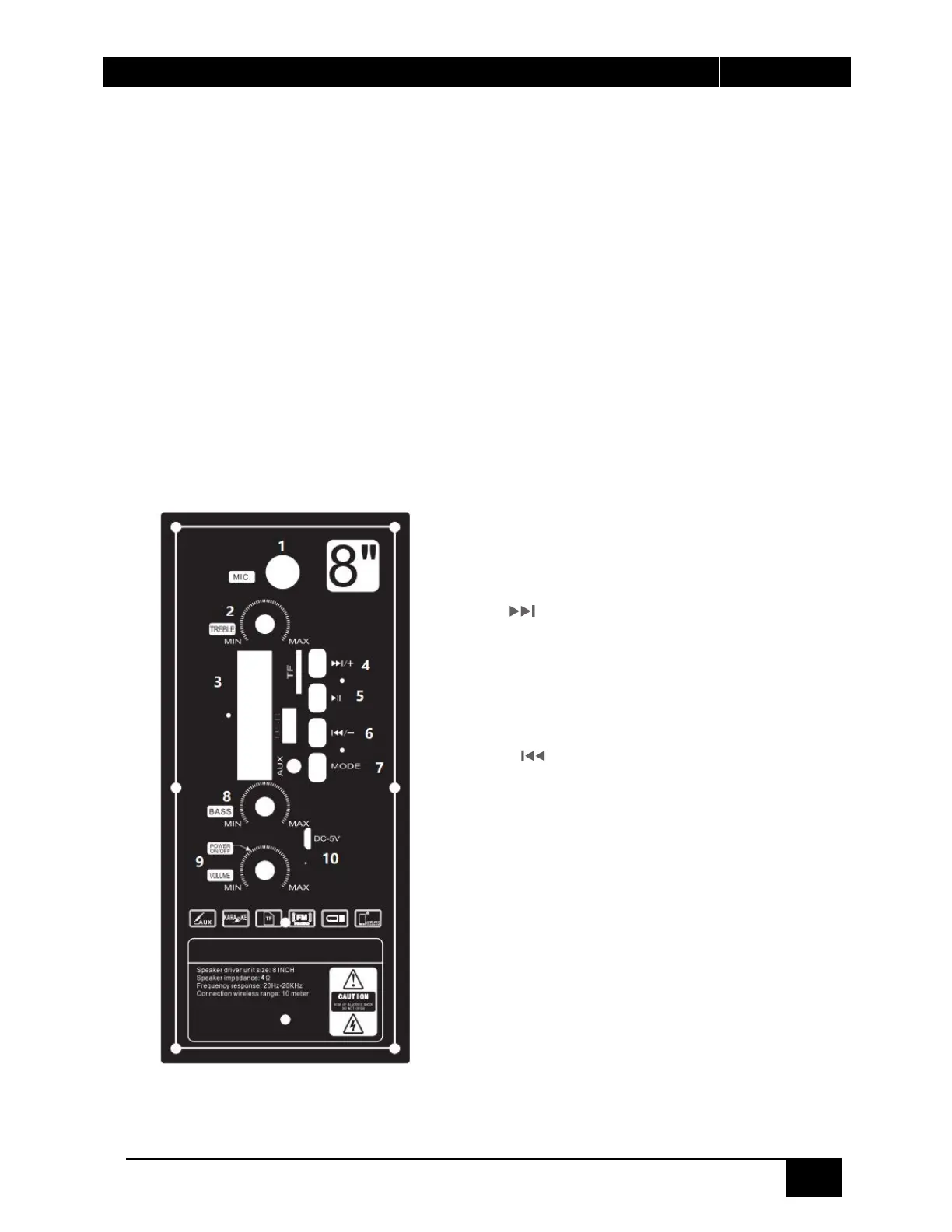 6. -/ : under FM/USB/TF/Bluetooth mode,