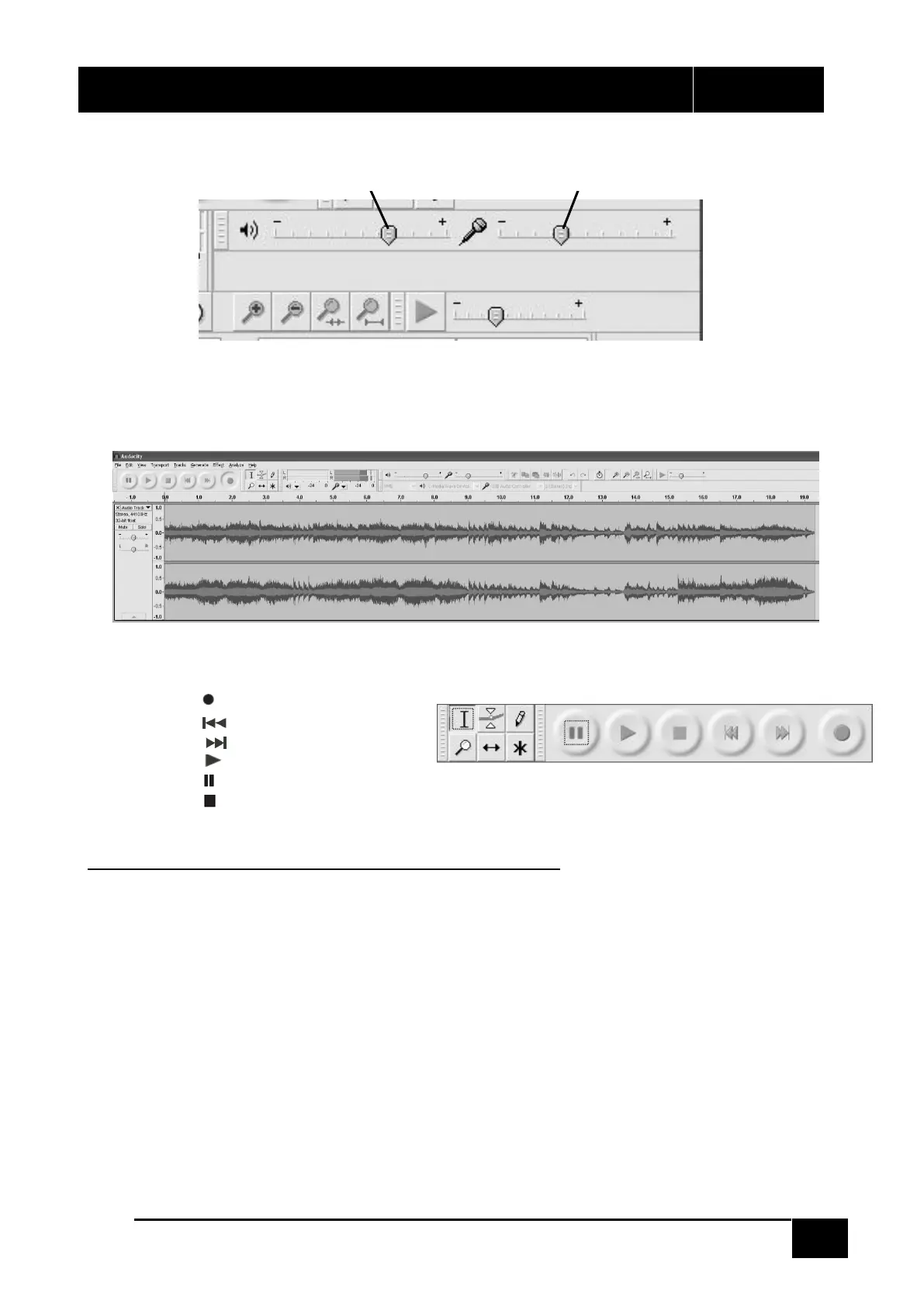 6. USE THE AUDACITY CONTROL PANEL TO RECORD OR LISTEN THE MUSIC YOU HAVE RECORDED