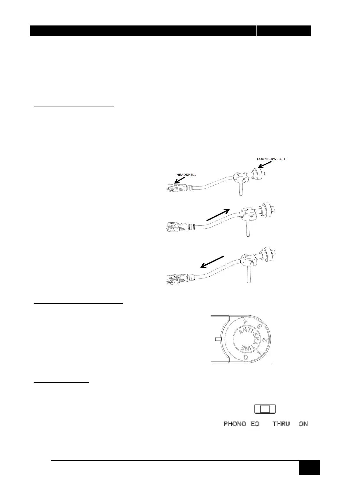 GEGEN DEN UHRZEIGERSINN DREHEN. „LEVEL BALANCE“ BEDEUTET, DASS DER TONARM PARALLEL
