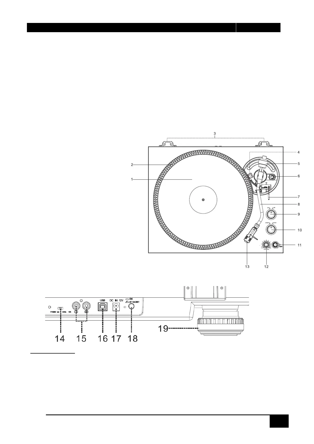 14. SELETTORE PHONO EQ / THRU ON