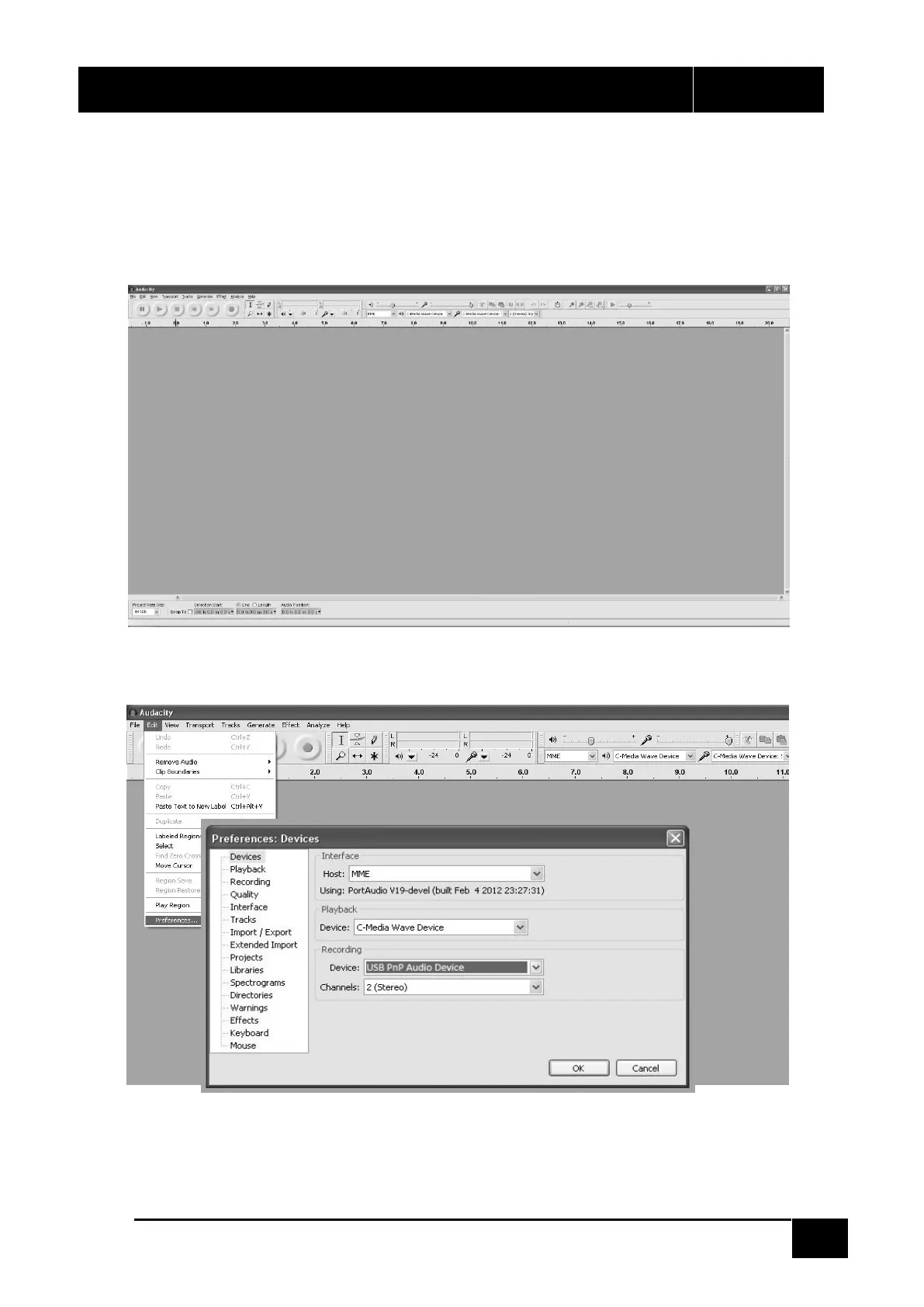 1. RUN THE AUDACITY FROM THE WINDOWS START MENU OR DOUBLE CLICK THE AUDACITY ICON