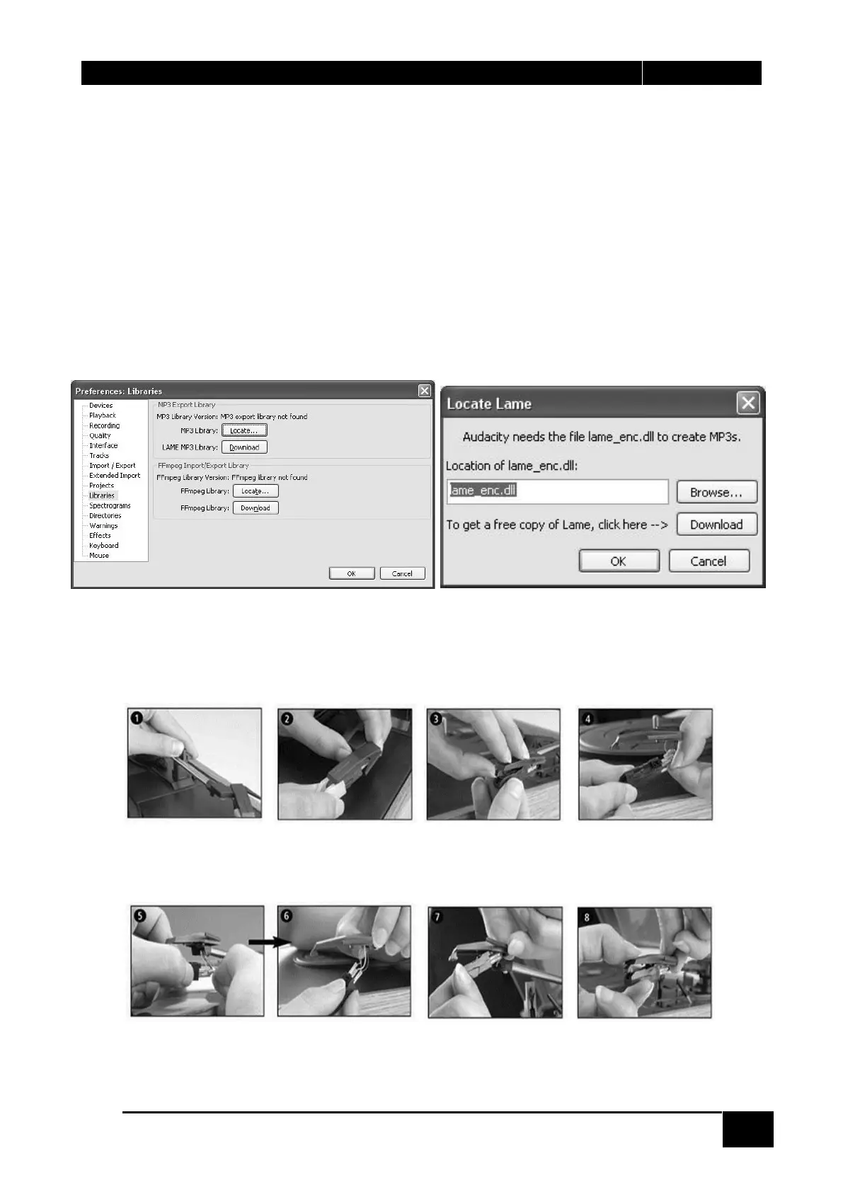manuellement en utilisant AudacityÉditionPréférencesLibrairies et cliquer sur le bouton « Localiser »