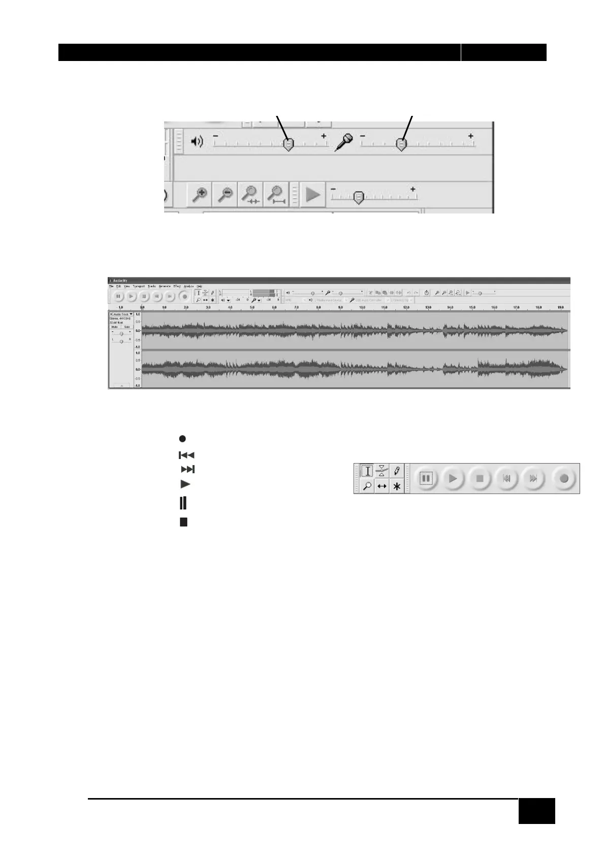 6. Usa il pannello di controllo di Audacity per registrare o ascoltare la musica che hai registrato