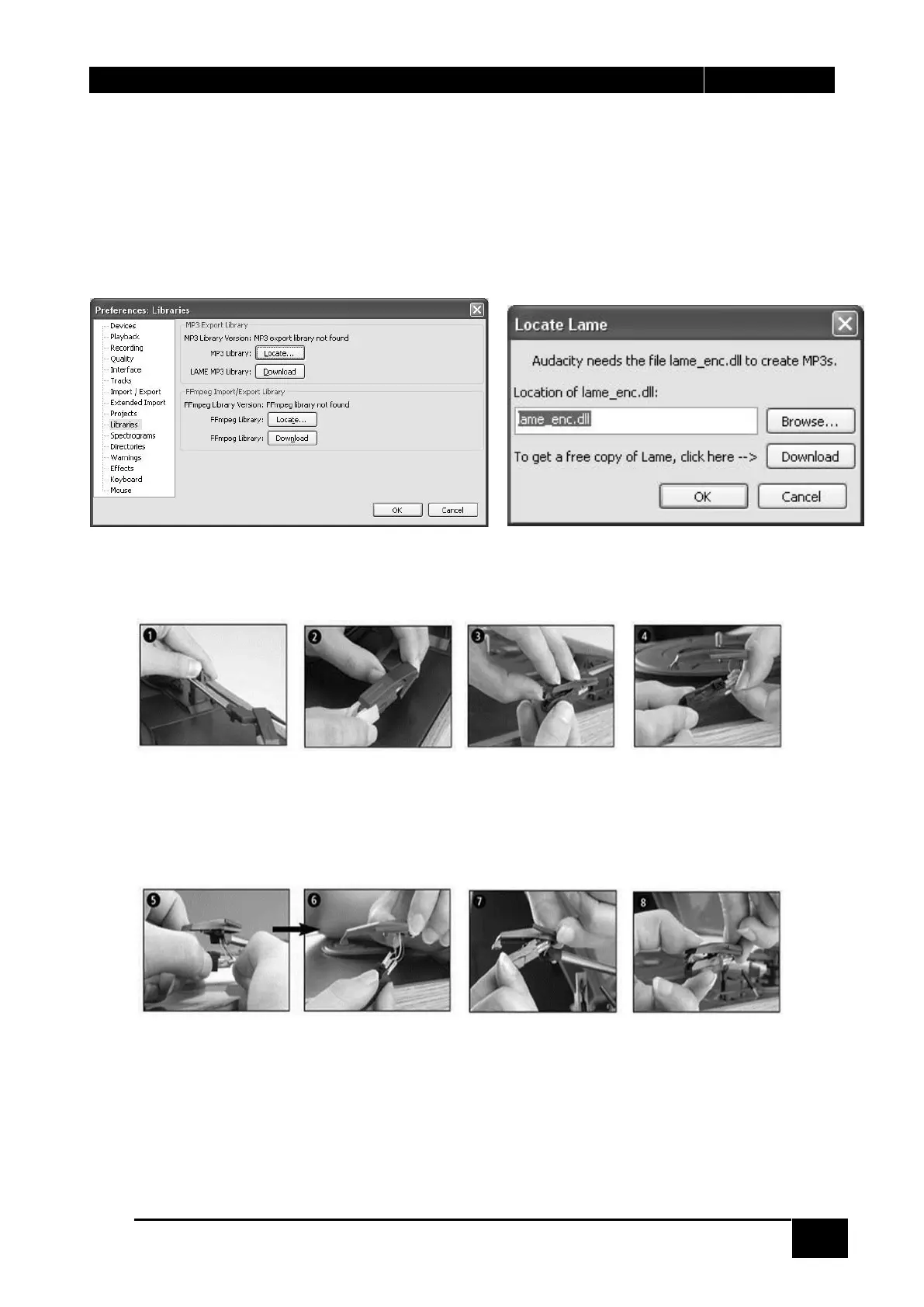 unter Audacity Edit Preference Libraries (Audacity Bearbeiten Einstellungen Bibliotheken) auf den
