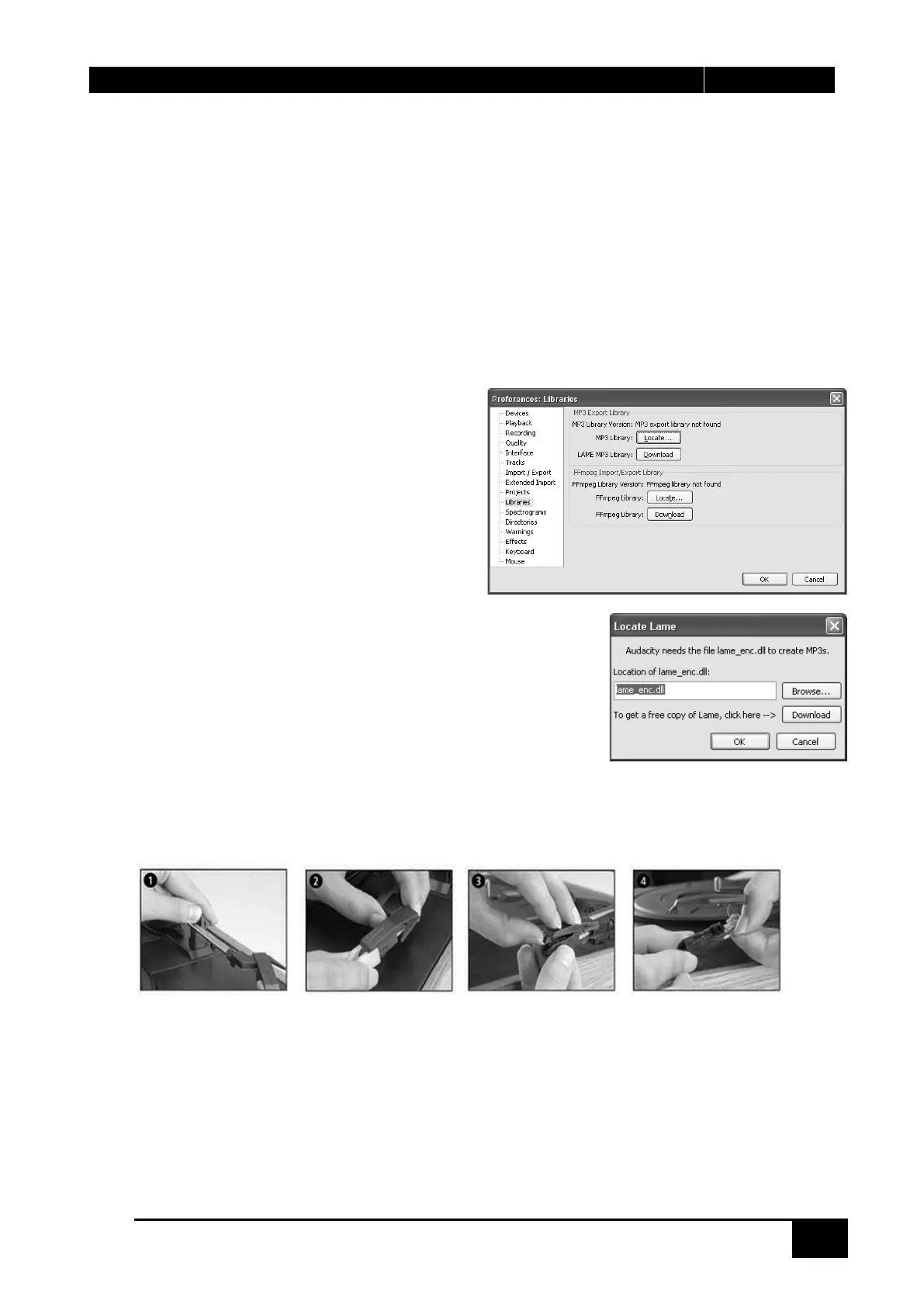 AudacityEditPreferenceLibraries and the click “Locate” button on