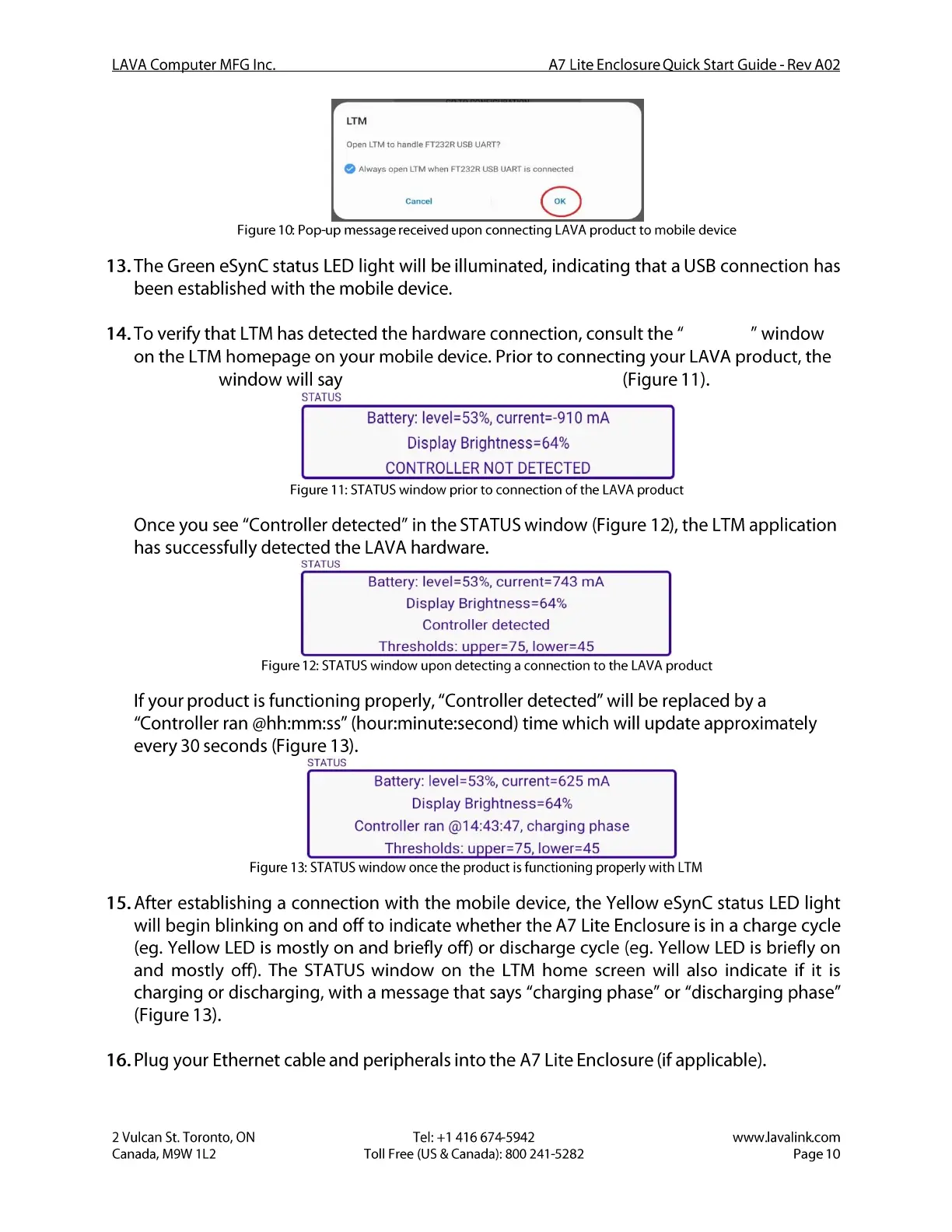Figure 12: STATUSwindow upon detecting a connection to the LAVA product