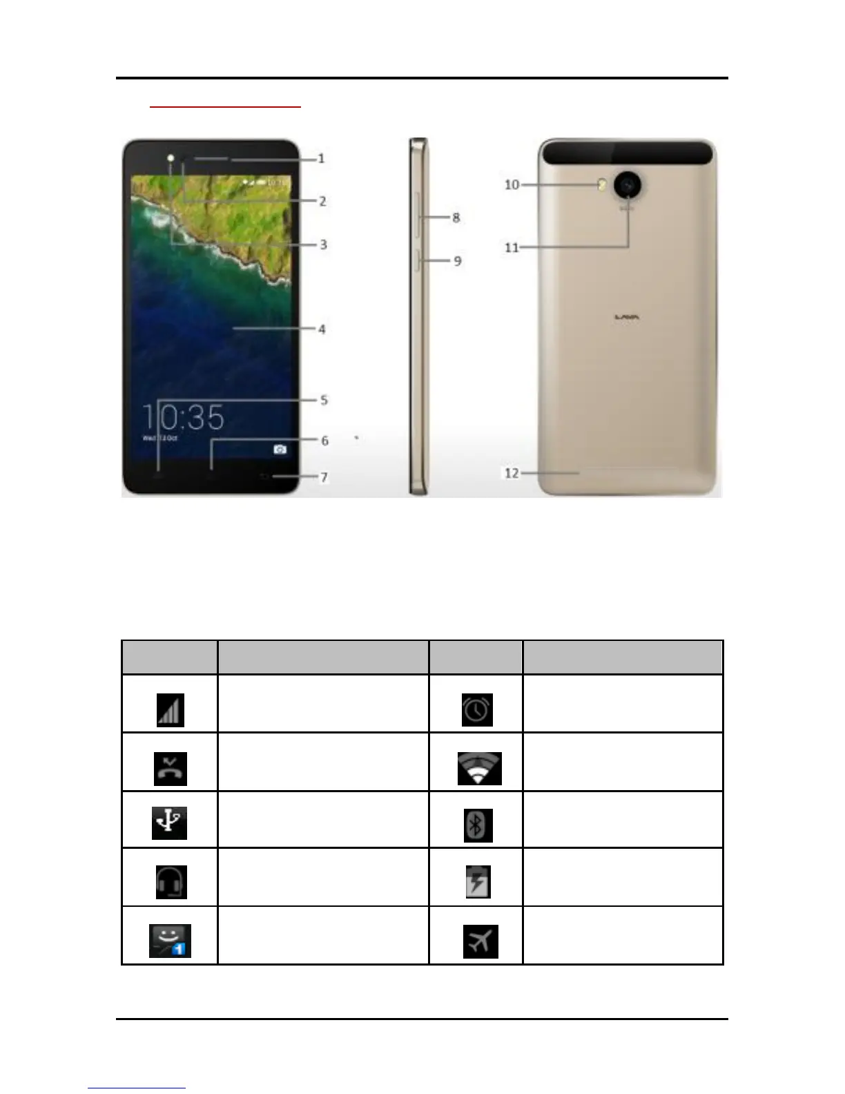 Lava A9 - Phone Layout and Controls; Physical Keys and Parts Identification; Screen Icons and Indicators Explained