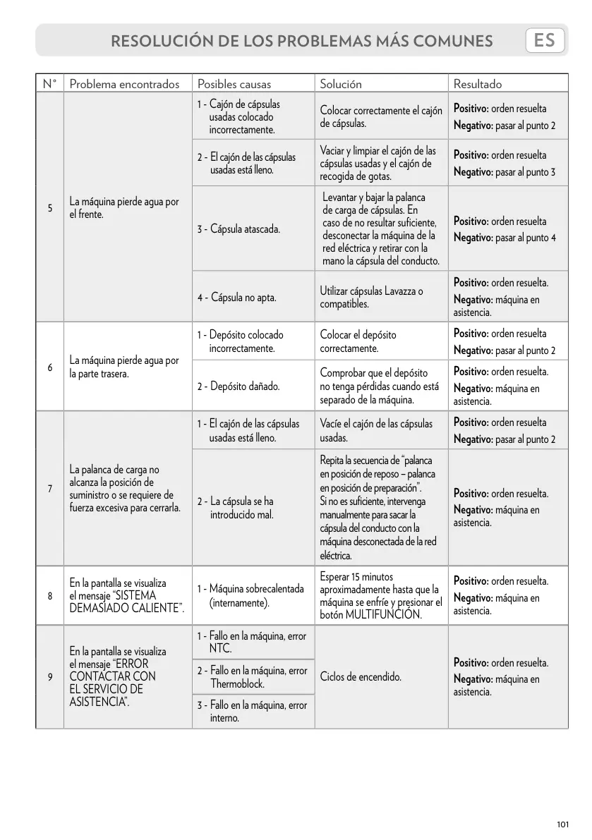 N° Problema encontrados Posibles causas Solución Resultado