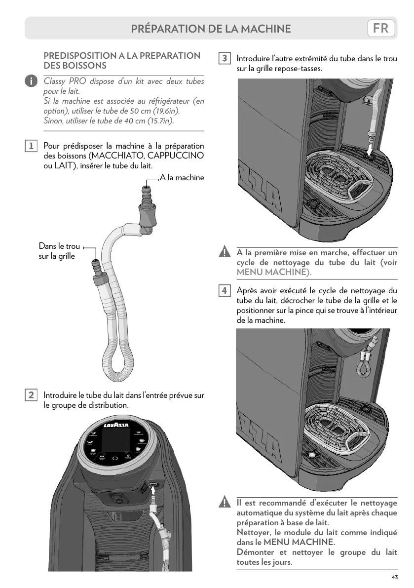 ou LAIT), insérer le tube du lait.