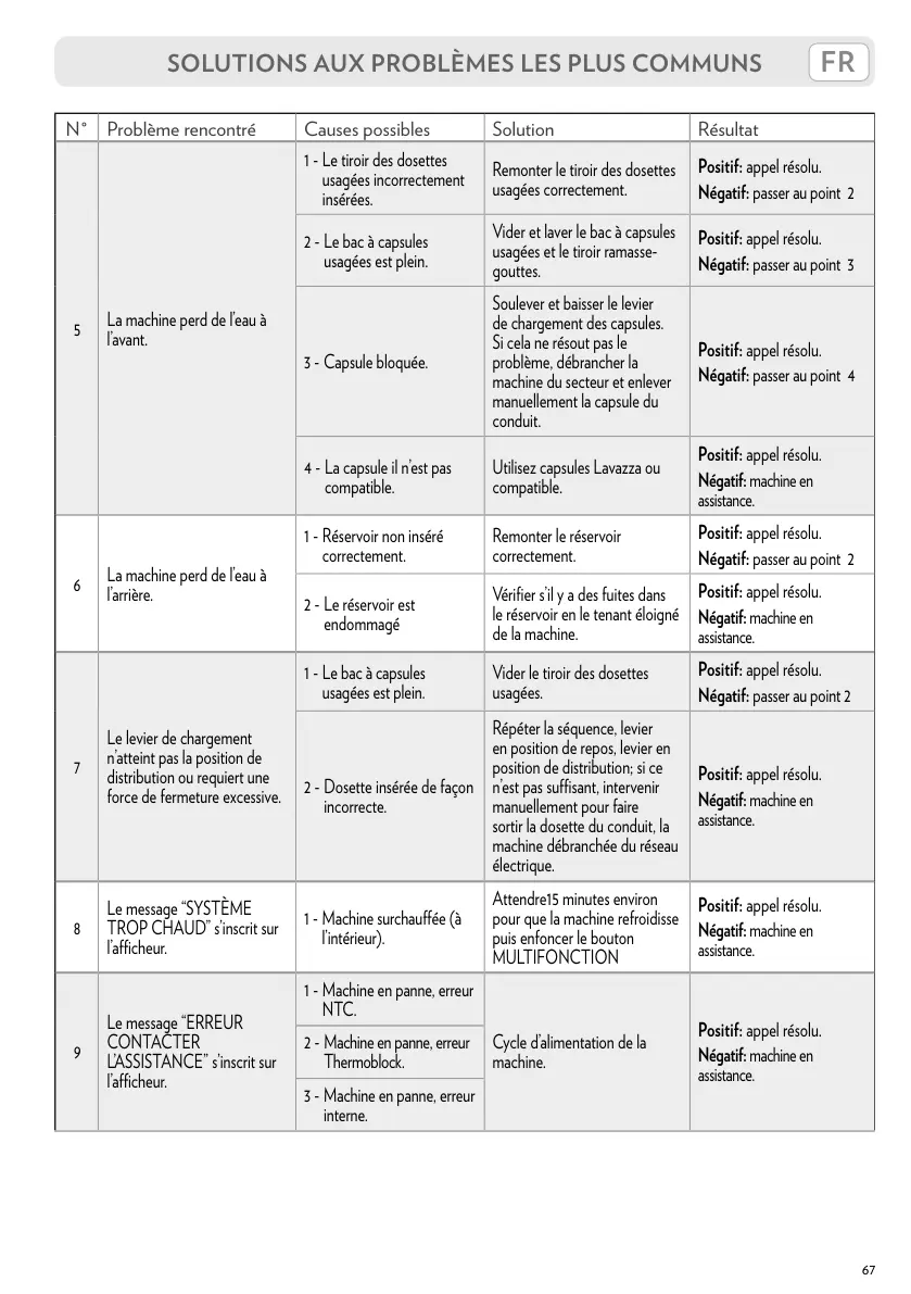N° Problème rencontré Causes possibles Solution Résultat