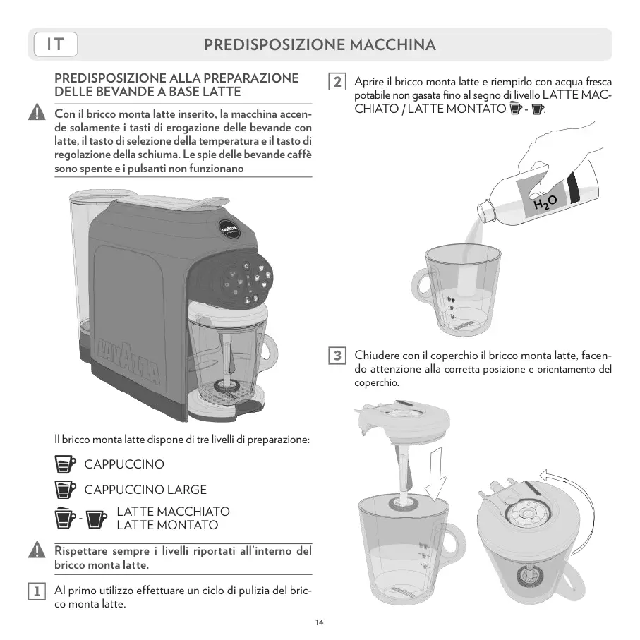 Il bricco monta latte dispone di tre livelli di preparazione: