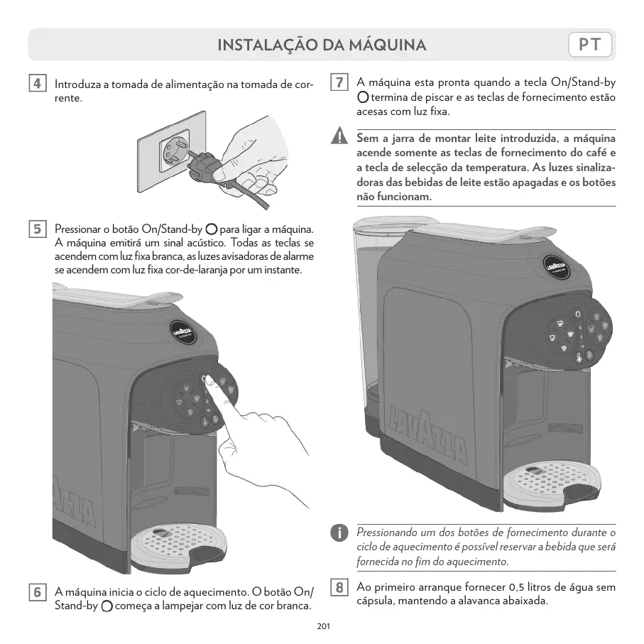 Pressionar o botão On/Stand-by para ligar a máquina.
