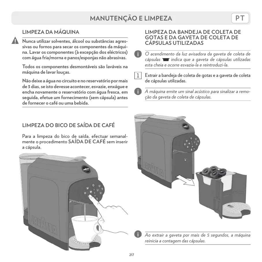 cápsulas indica que a gaveta de cápsulas utilizadas