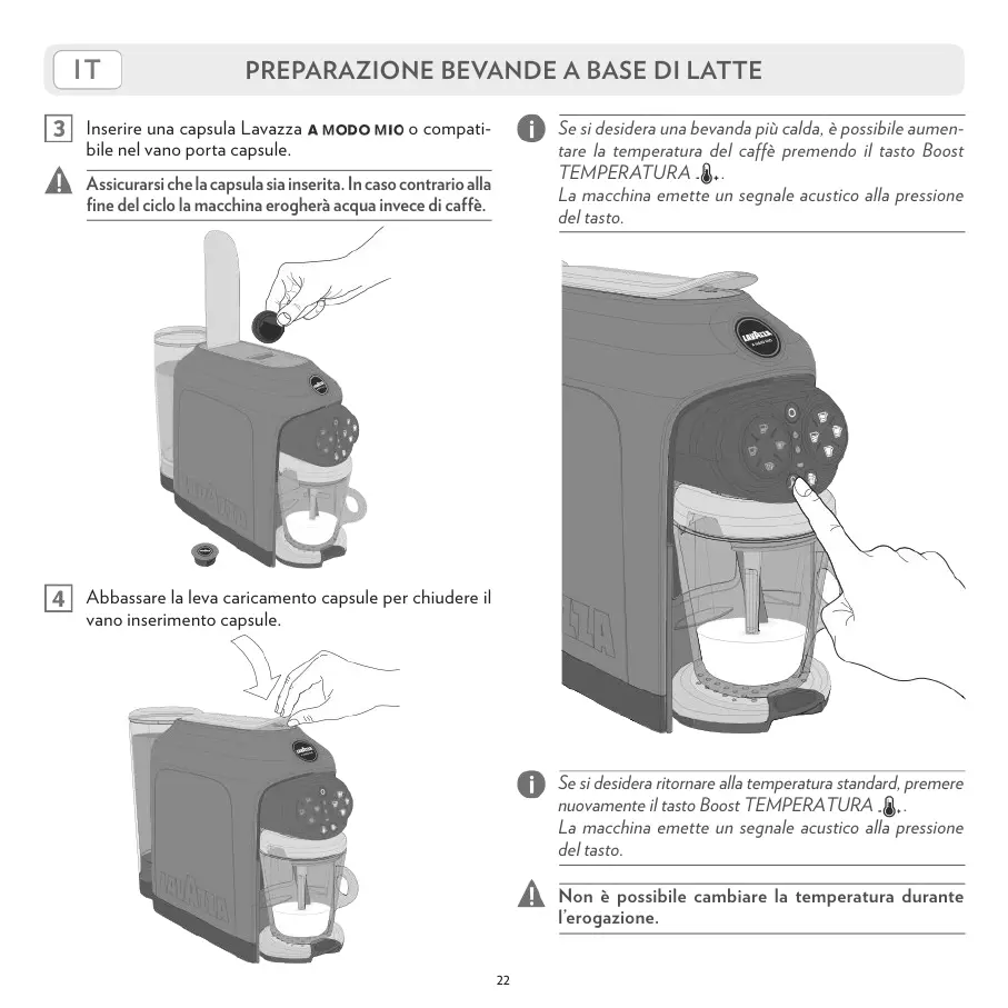 tare la temperatura del caffè premendo il tasto Boost