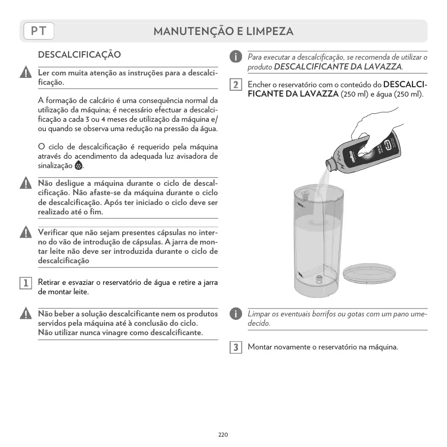 Ler com muita atenção as instruções para a descalci-
