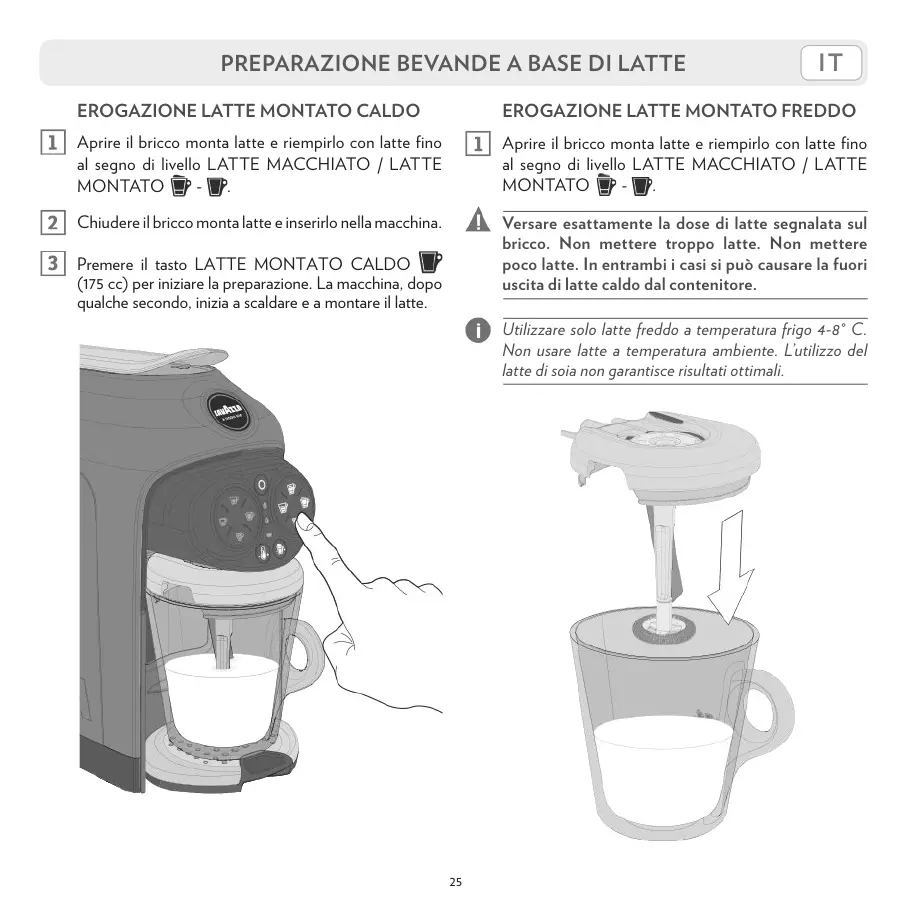 Utilizzare solo latte freddo a temperatura frigo 4-8° C.