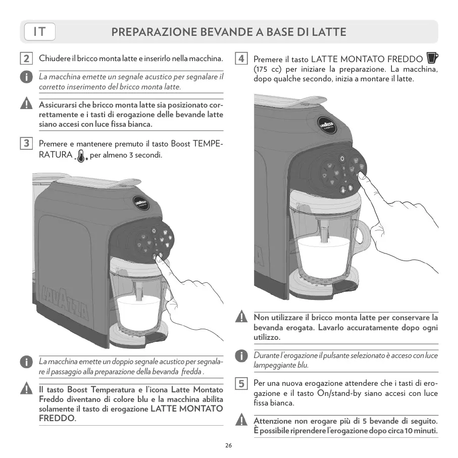 Il tasto Boost Temperatura e l’icona Latte Montato