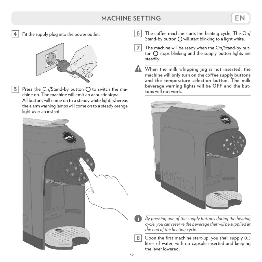 The machine will be ready when the On/Stand-by but-