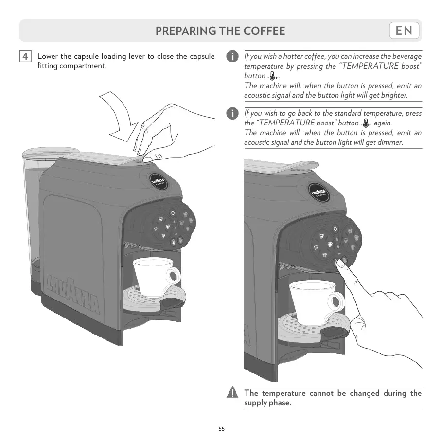 If you wish a hotter coffee, you can increase the beverage