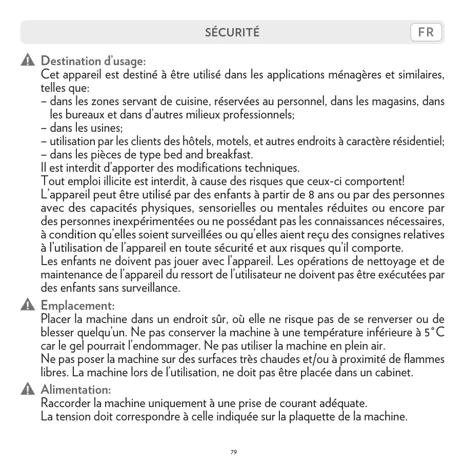 blesser quelqu’un. Ne pas conserver la machine à une température inférieure à 5°C