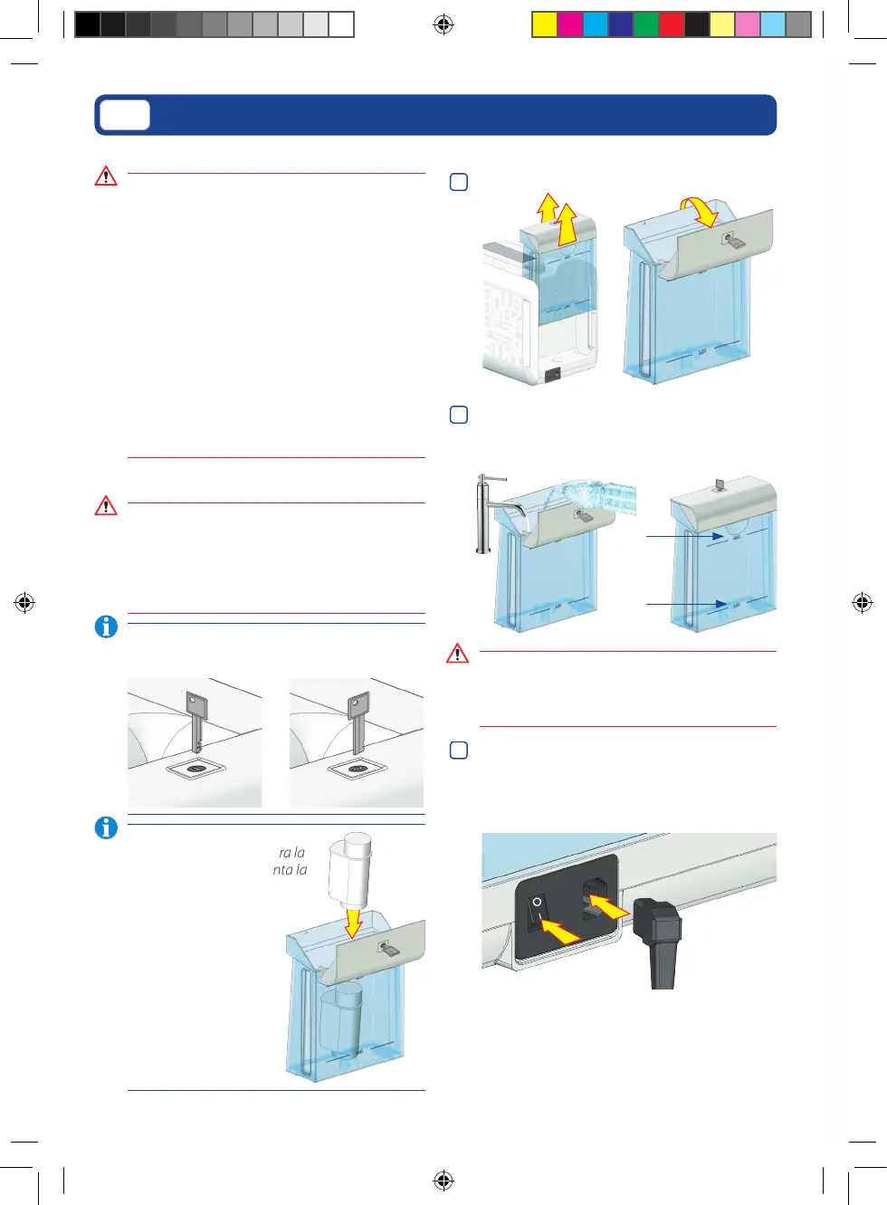 Levantar el depósito del agua y abrir su tapa.