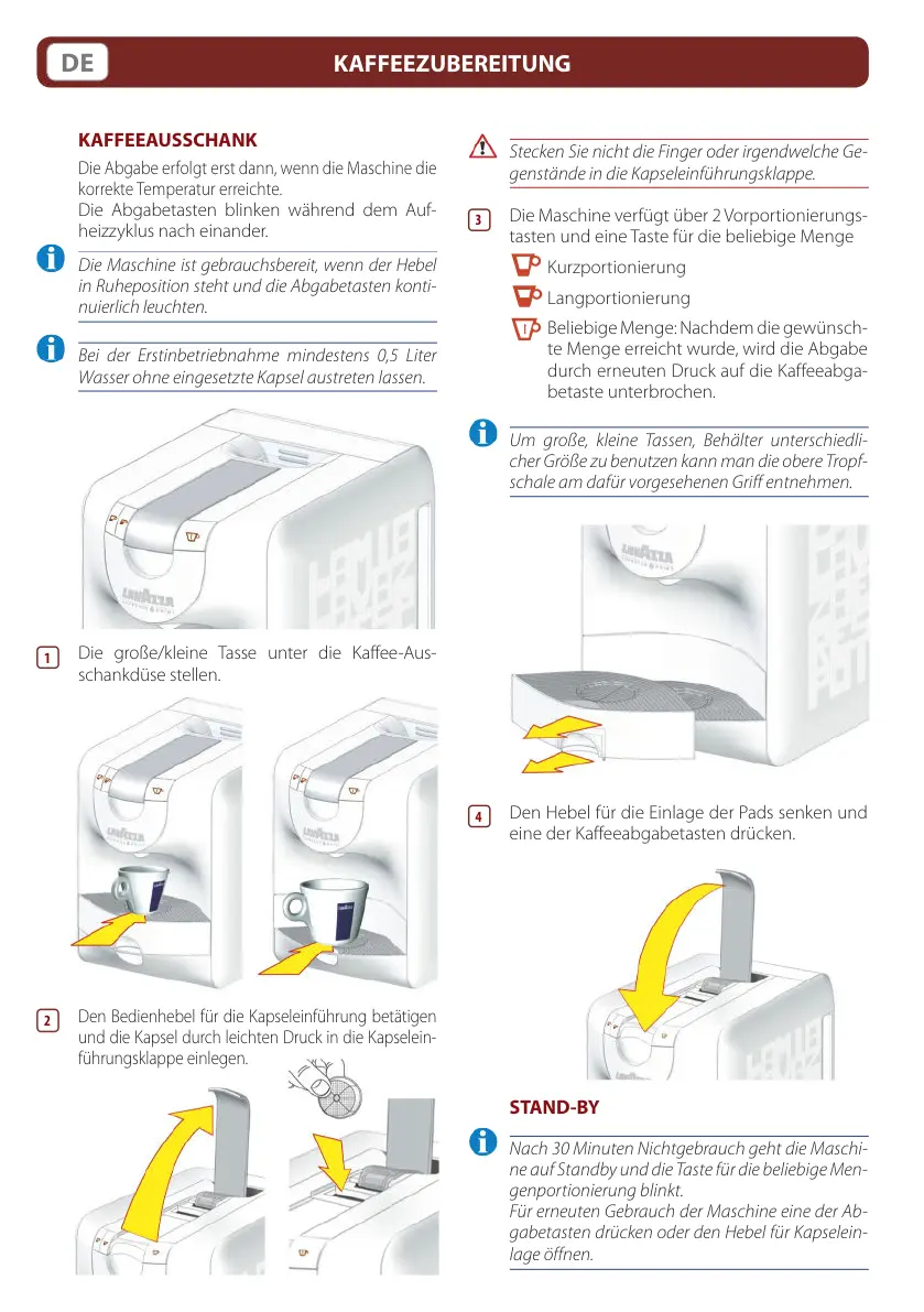 gabetasten drücken oder den Hebel für Kapselein-