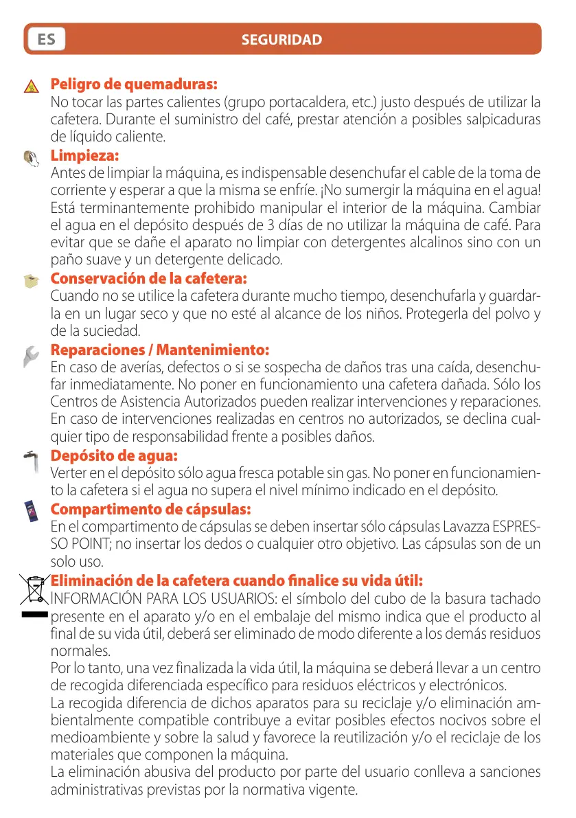 En el compartimento de cápsulas se deben insertar sólo cápsulas Lavazza ESPRES-