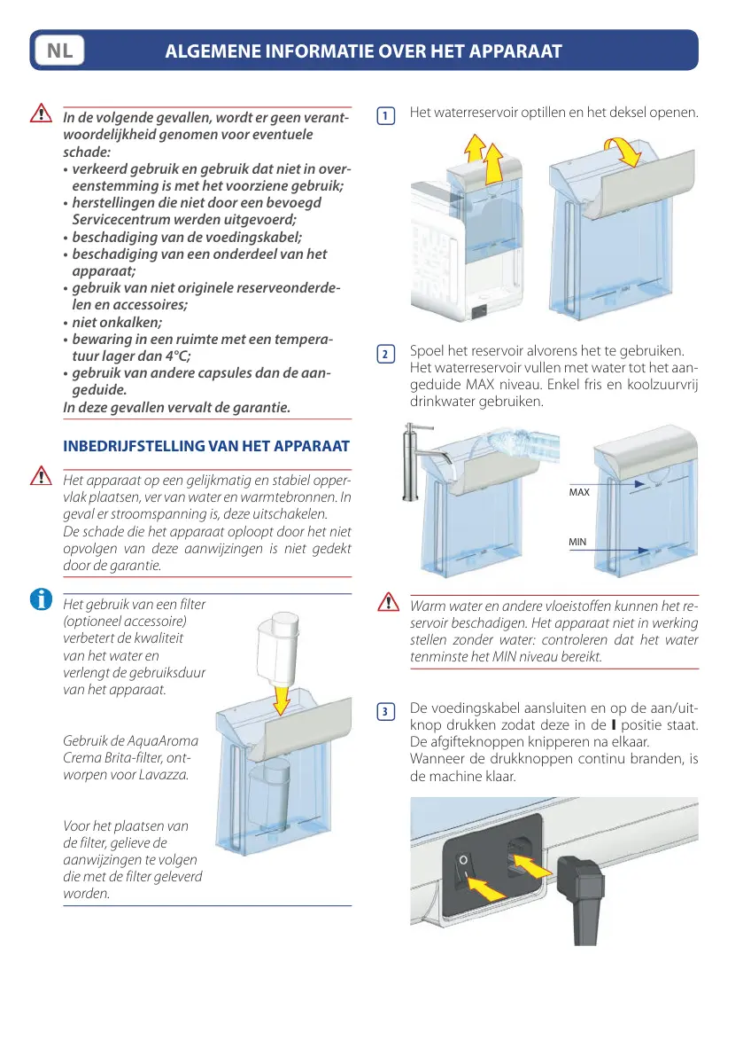 INBEDRIJFSTELLING VAN HET APPARAAT