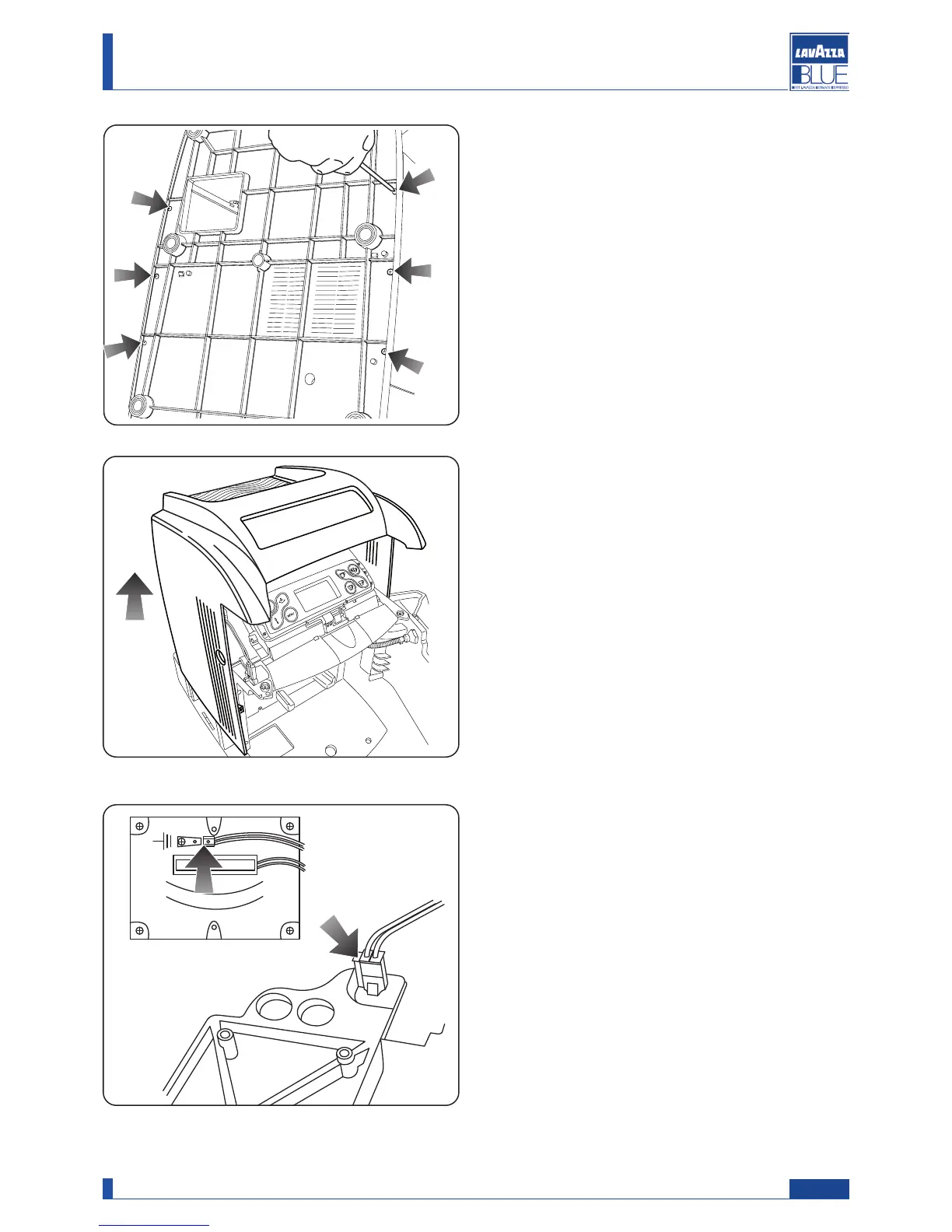 Loosen the indicated screws which fix the body to the