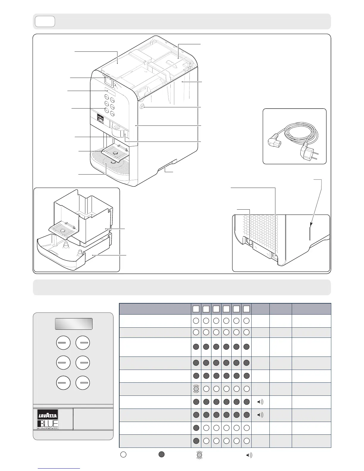 LAVAZZA LB 2500 PLUS - COMPONENTS; MESSAGES TO DISPLAY MACHINE STATUS