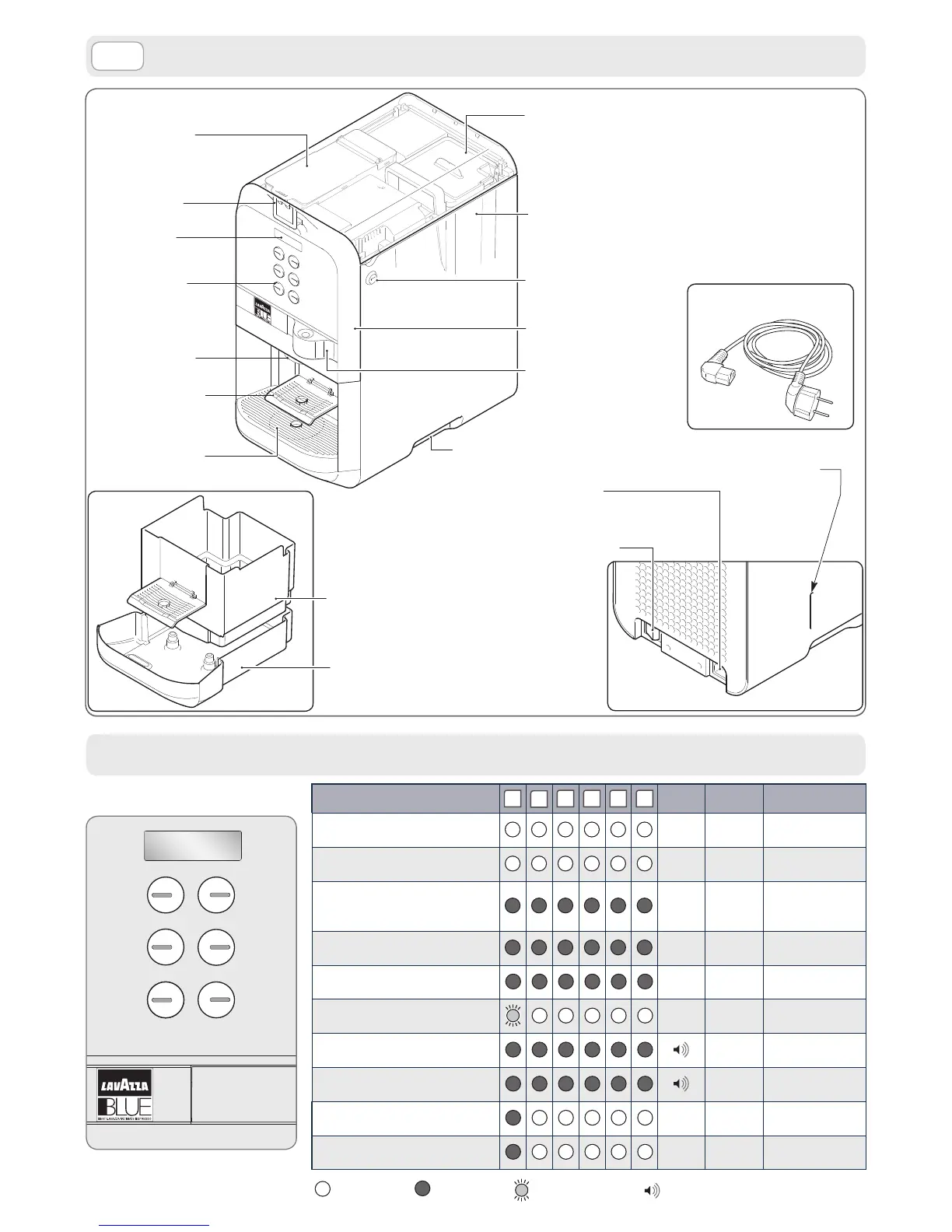 LAVAZZA LB 2500 PLUS - Componentes; Mensagens no Ecrã de Estado da Máquina