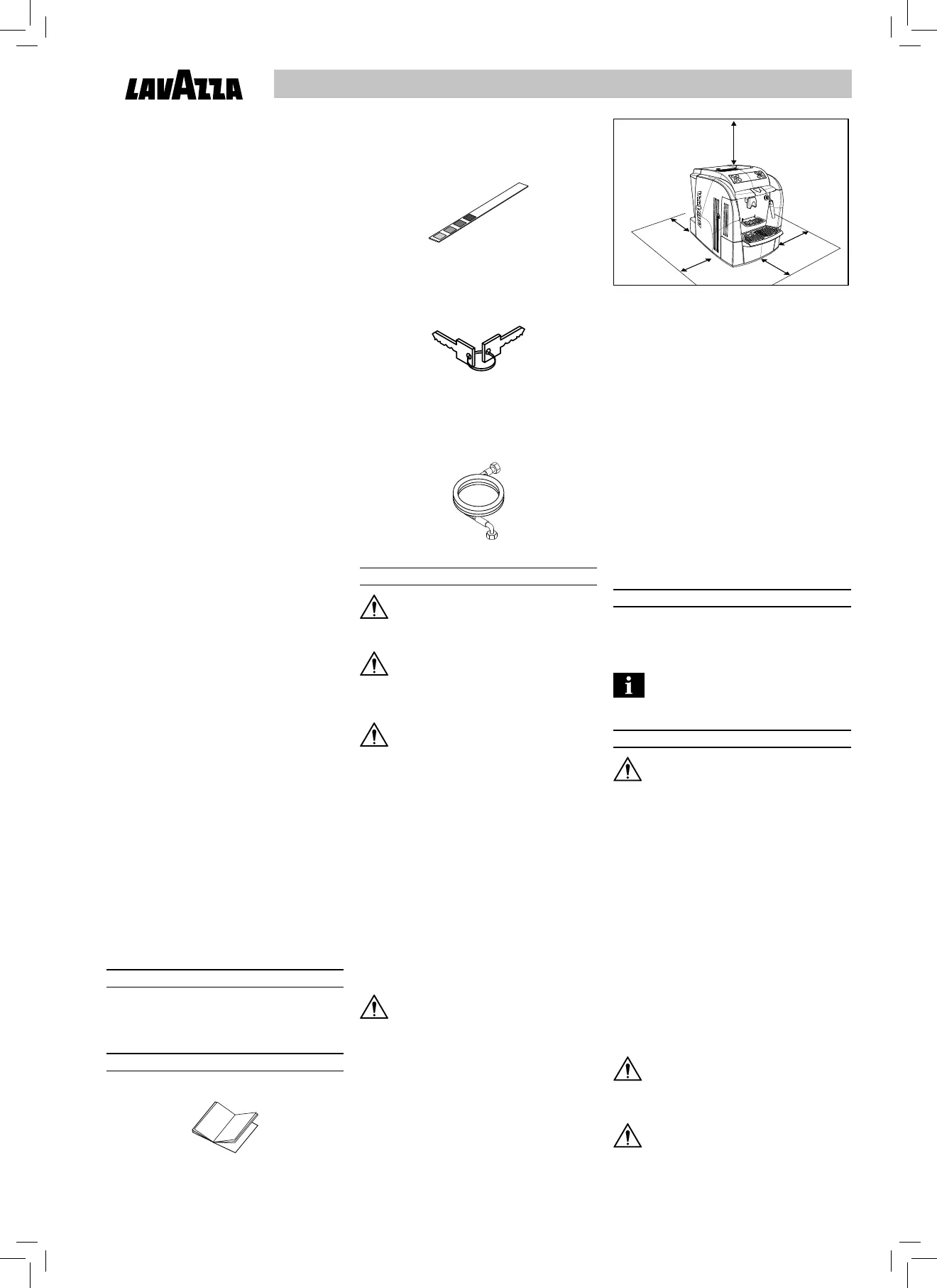 • Der Raum muss für die Installation der Maschine