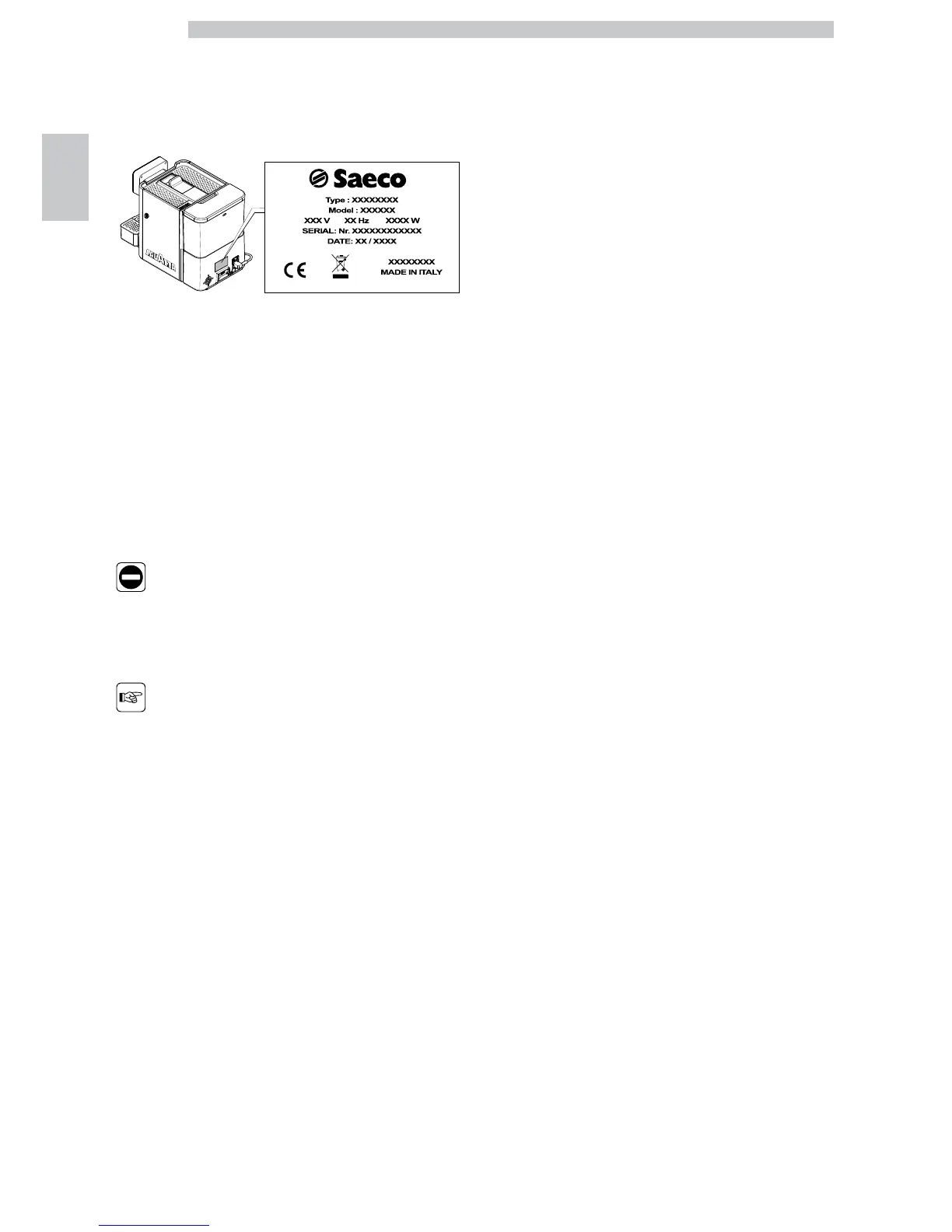 The appliance is identified by the model name and serial