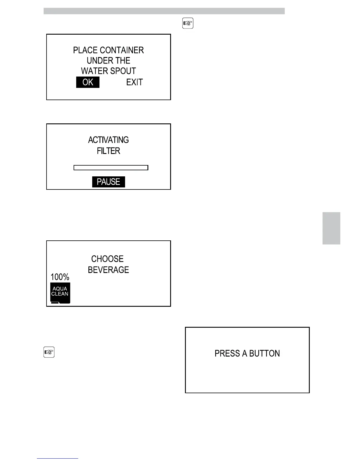 filters used. Fill the water tank again up to the MAX level