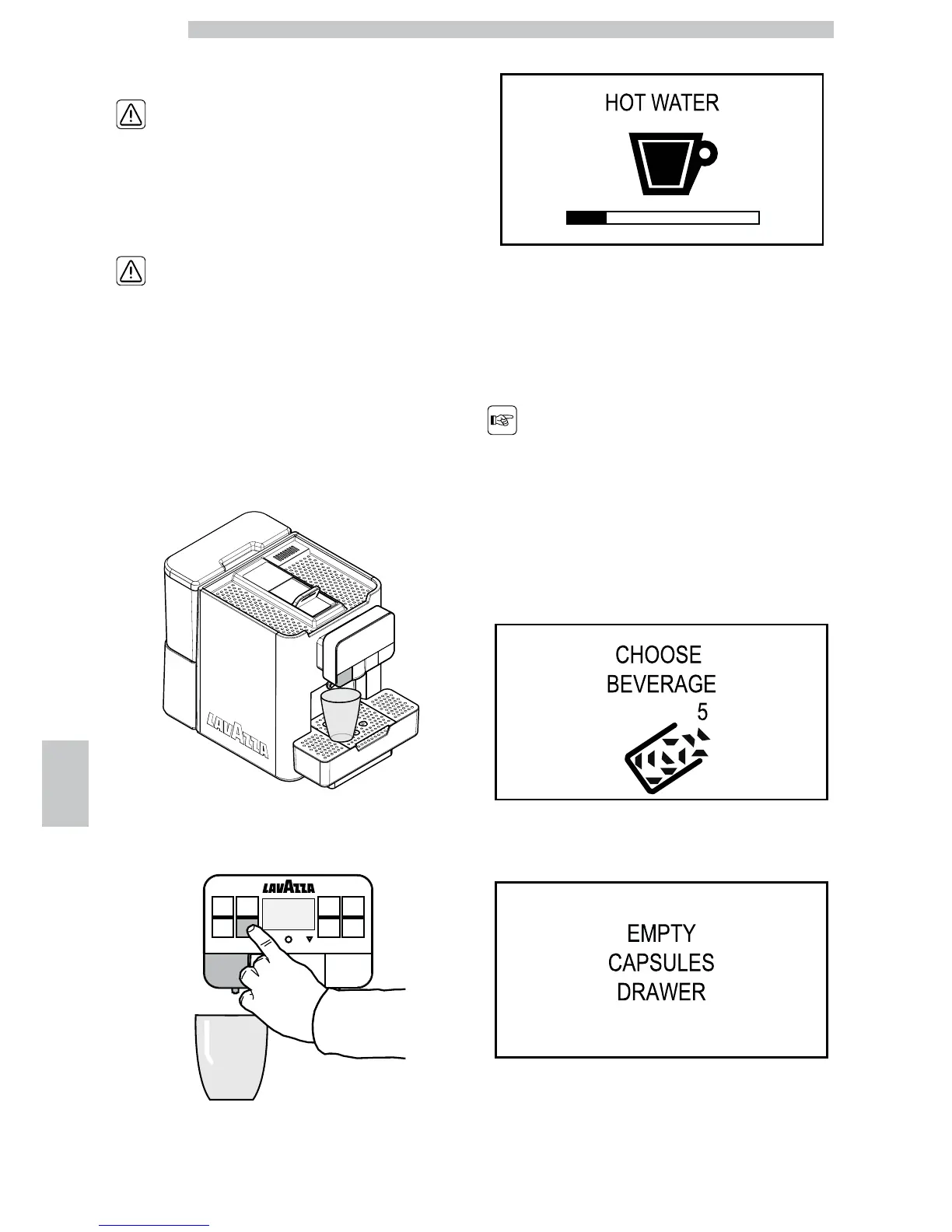 water. Place a container under the hot water dispensing