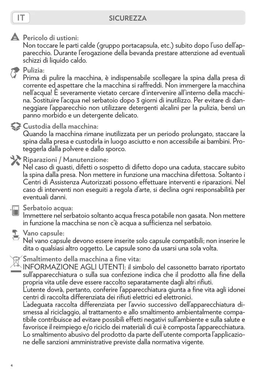 Non toccare le parti calde (gruppo portacapsula, etc.) subito dopo l’uso dell’ap-