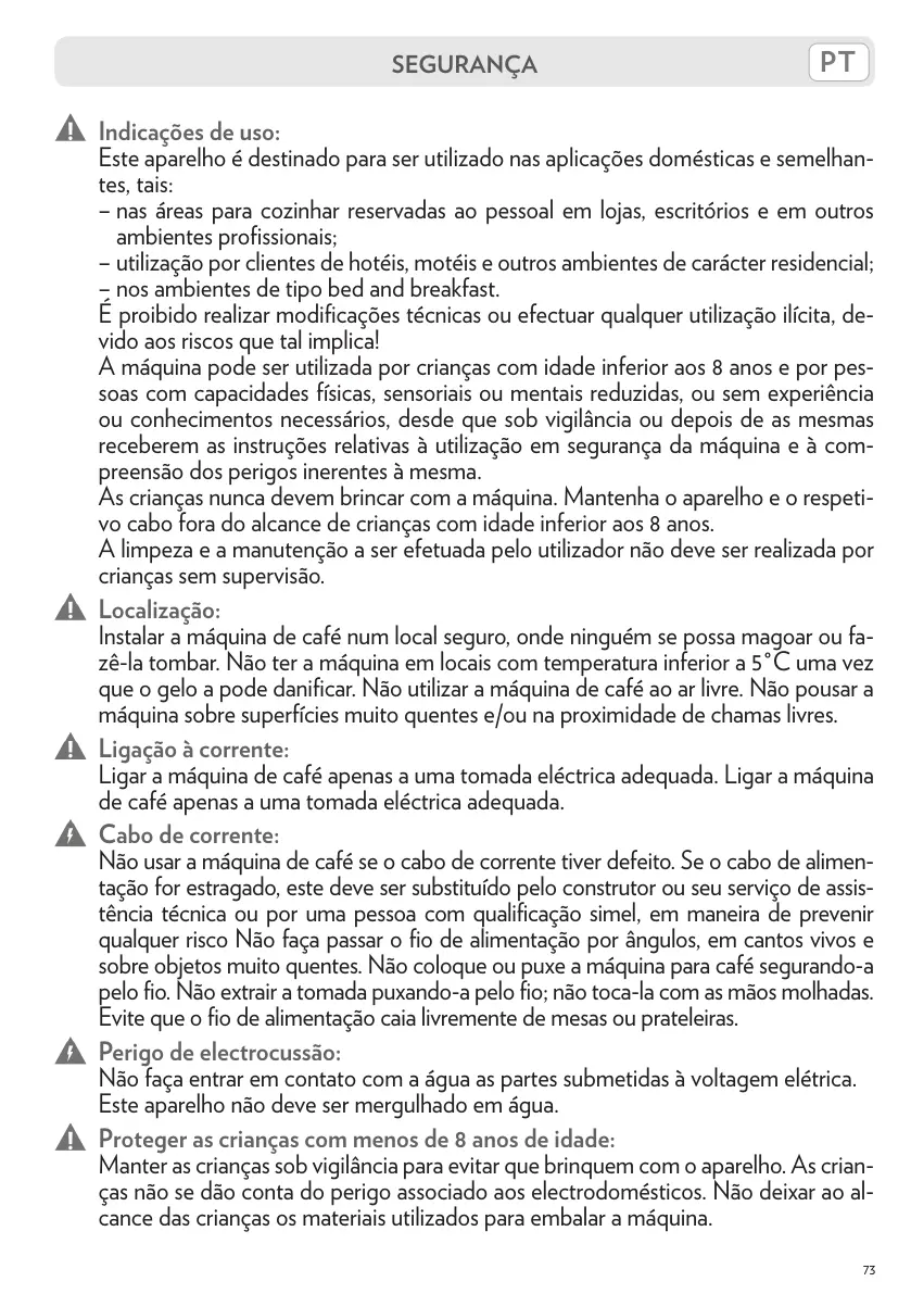 que o gelo a pode danificar. Não utilizar a máquina de café ao ar livre. Não pousar a