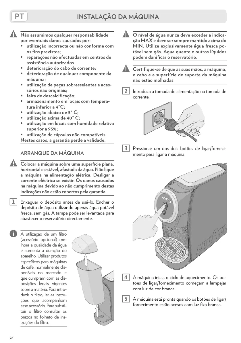 MIN. Utilize exclusivamente água fresca po-