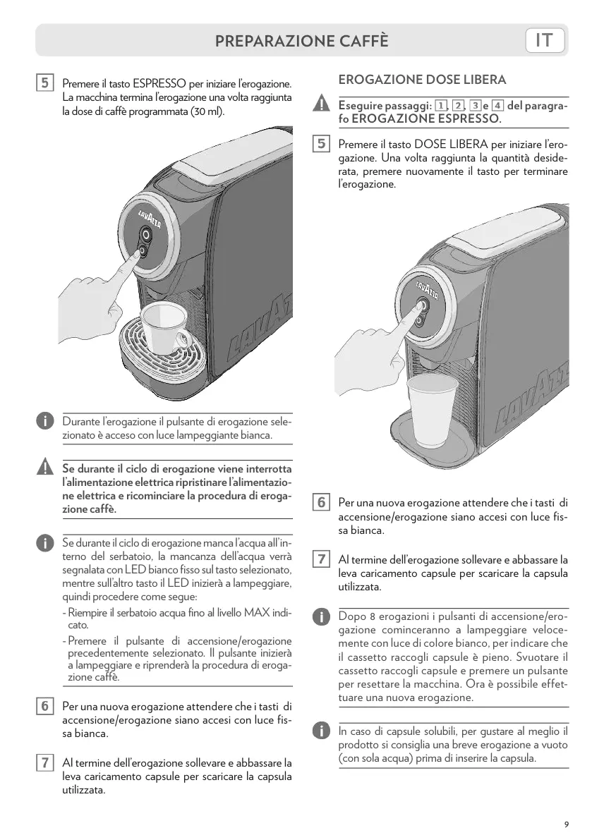 Durante l’erogazione il pulsante di erogazione sele-
