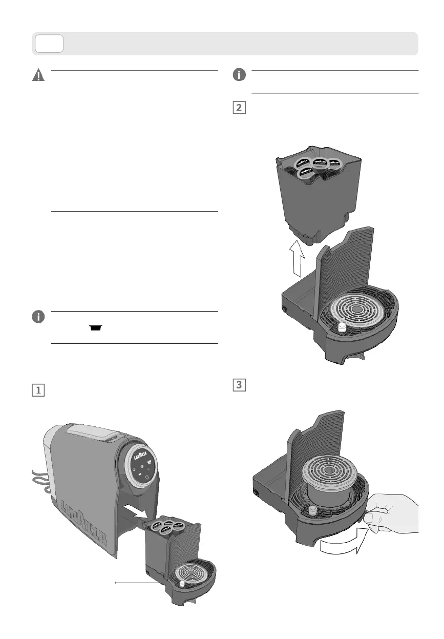 Remova a gaveta de cápsulas usadas / tabuleiro