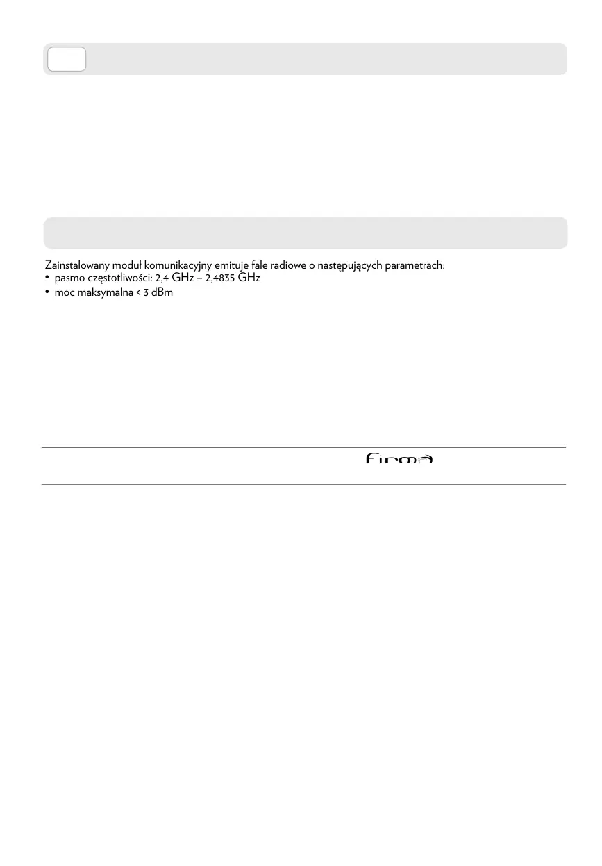 Zainstalowany moduł komunikacyjny emituje fale radiowe o następujących parametrach: