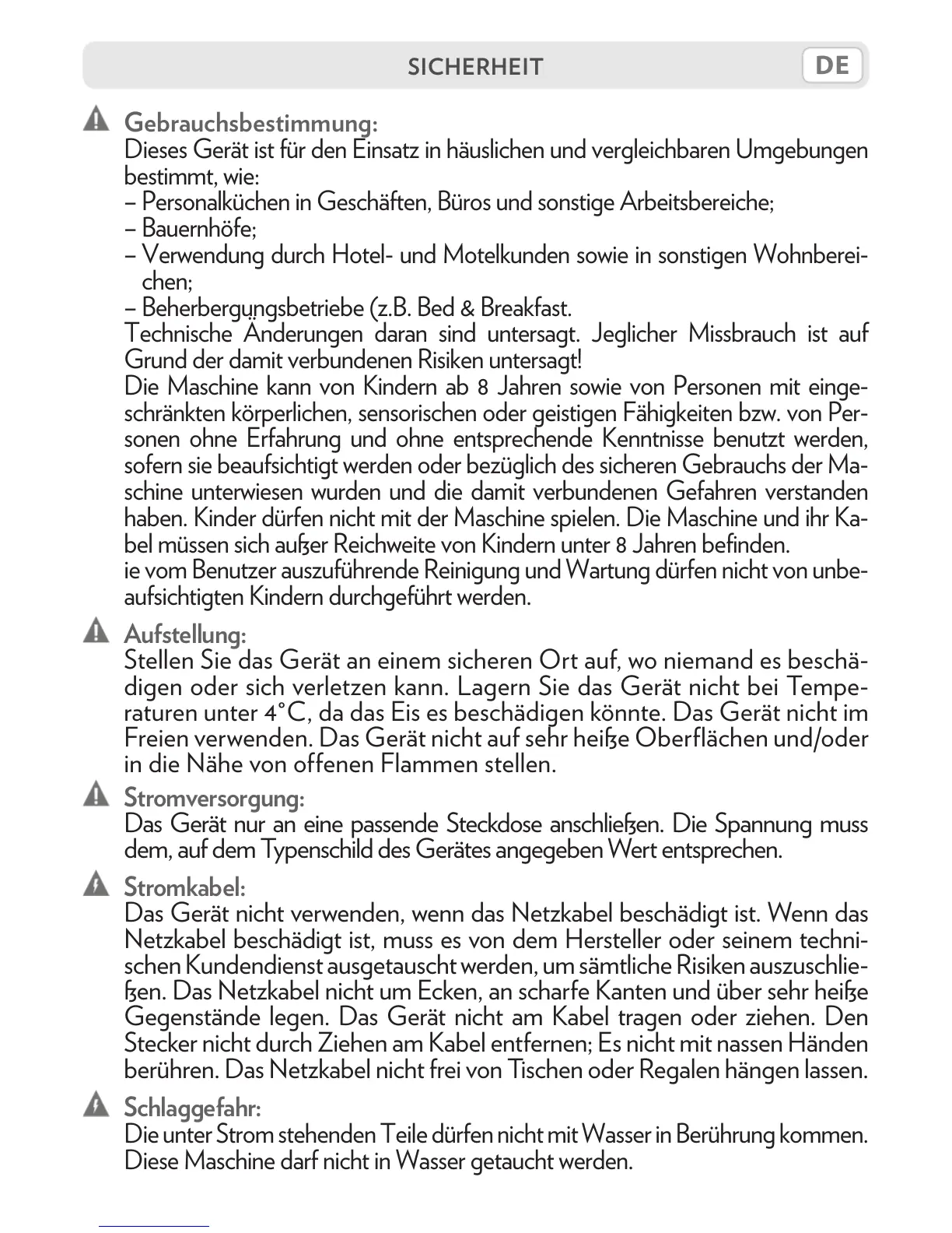 Diese Maschine darf nicht in Wasser getaucht werden