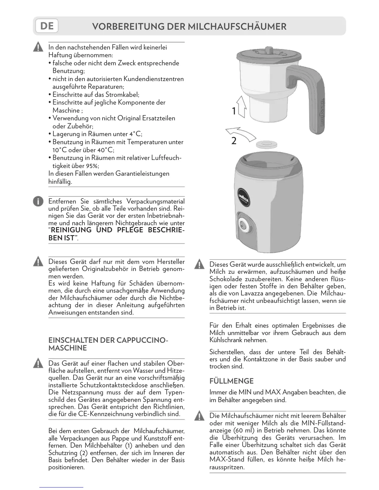 Bei dem ersten Gebrauch der Milchaufschäumer,