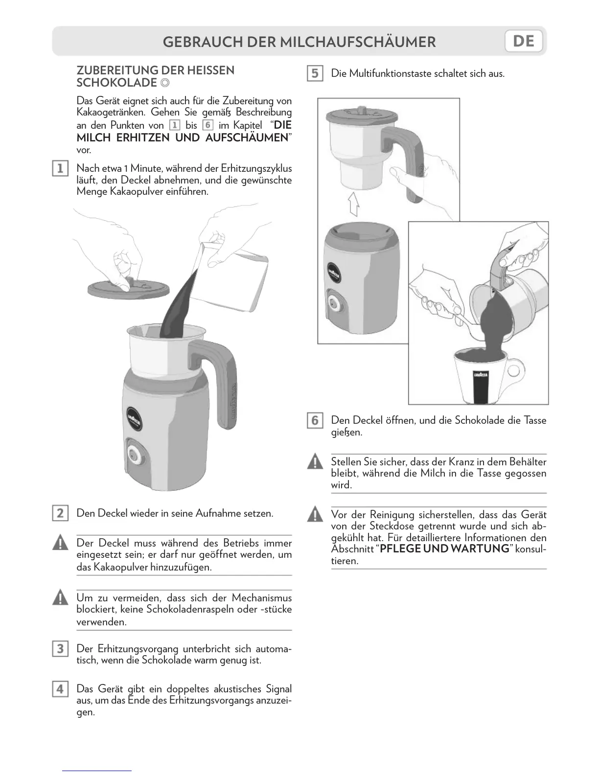 GEBRAUCH DER MILCHAUFSCHÄUMER