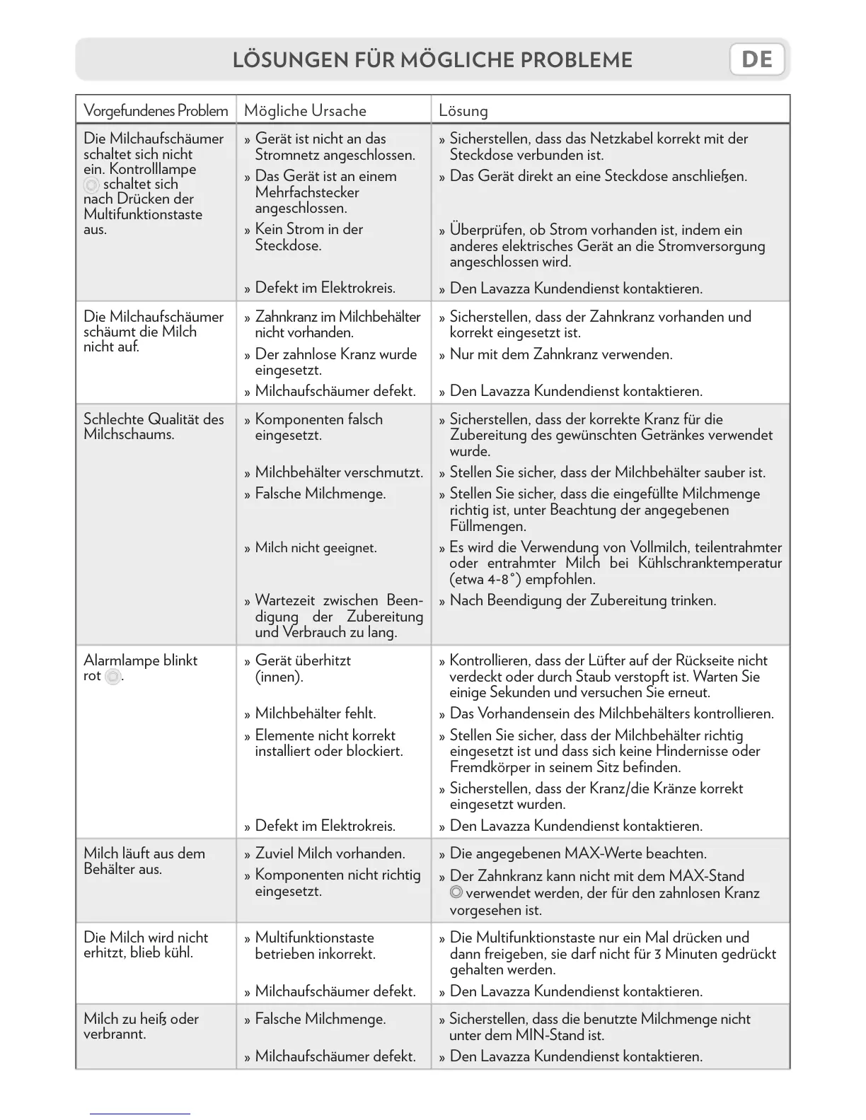 LÖSUNGEN FÜR MÖGLICHE PROBLEME