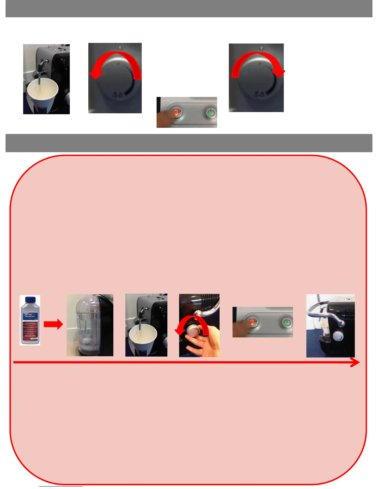 • Turn the machine back on and flush through 2 tanks of water (one via the steam