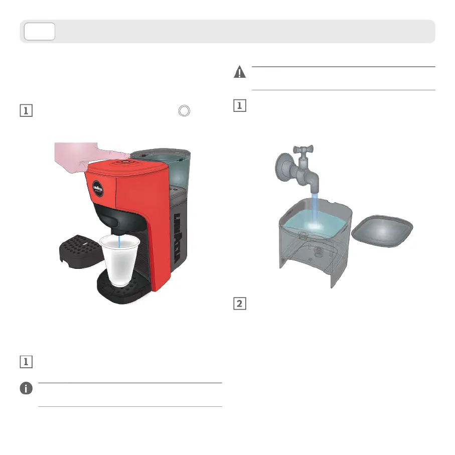 1 Tasse Wasser (ca. 60 ml) ausgeben, und wieder drü-
