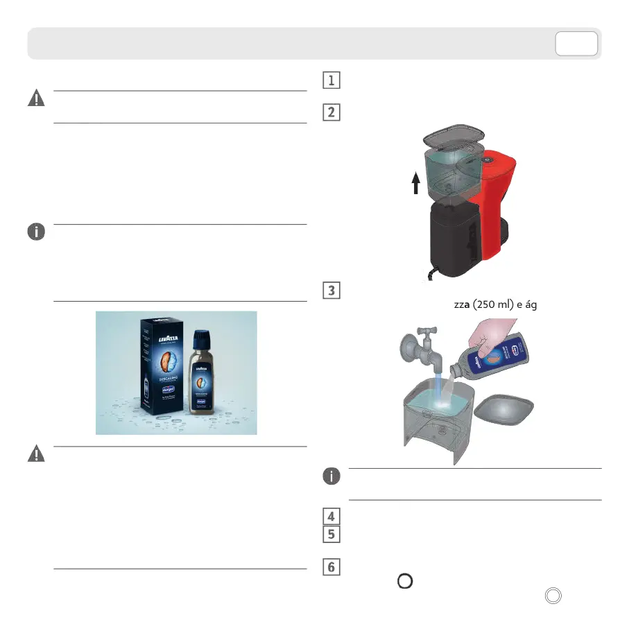 Não desligue a máquina durante o ciclo de descal-