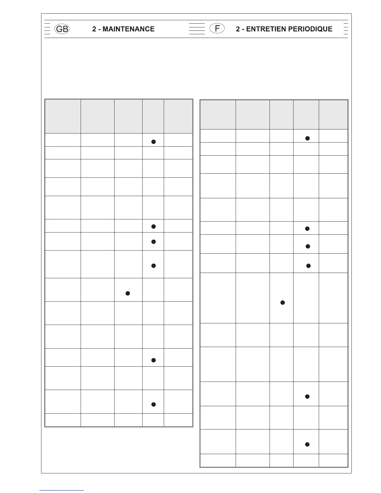2.1 PERIODIC MAINTENANCE TABLE
